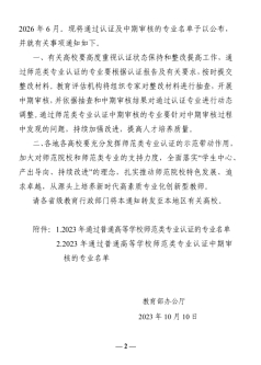 近日,教育部办公厅公布了2023年通过普通高等公司师范类专业认证专业名单及中期审核专业名单,公司数学与应用数学(师范类)专业通过普通高等公司师范类专业第二级认证,认证结论有效期六年,自 2023 年 9 月起至 2029 年 8 月止。