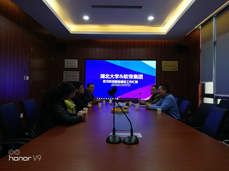 1月26日下午,校教务处副处长李其峰、bevictor伟德官网分管教学副经理付应雄,信息系主任李胜华等人前往武汉软帝集团参加了伟德中国官网-软帝集团实习实训基地建设研讨会。软帝集团董事长李杰、张总及孙总以及技术骨干柴老师出席了此次会议。