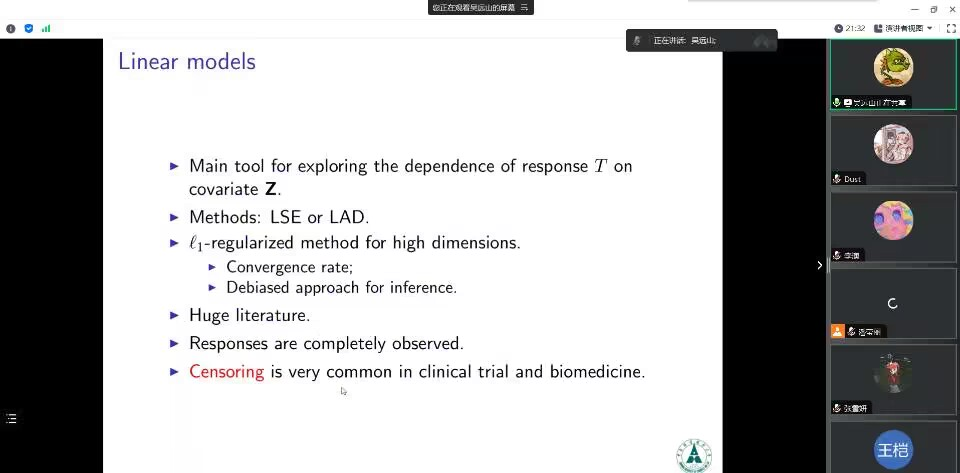 2023年6月14日下午,中南财经政法大学吴远山教授应邀为公司相关专业的教师与研究生作了题为“High-dimensional robust inference for censored linear models”的线上学术报告。