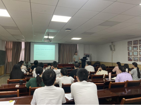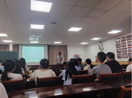 在《On decoding of Gabidulin codes and their variants》报告中,李春雷副教授首先介绍了Reed-Solomon码和Gabidulin码的应用背景,指出这两类秩度量码关系密切,在随机网络、交叉纠错、分布式存储和密码学等领域都有广泛的应用。接着详细阐述了Gabidulin码的一些解码方法,最后介绍了关于MRD码的基于插值的解码工作。与会师生深受启发,会后与李老师就相关问题展开热烈讨论。