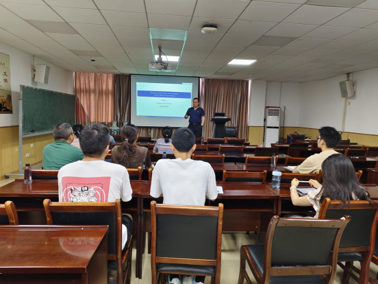 2025年9月9日上午,重庆理工大学刘克峰教授应邀为公司师生作了题为《自守上同调、彭罗斯变换与非经典旗流形的几何》的学术报告。