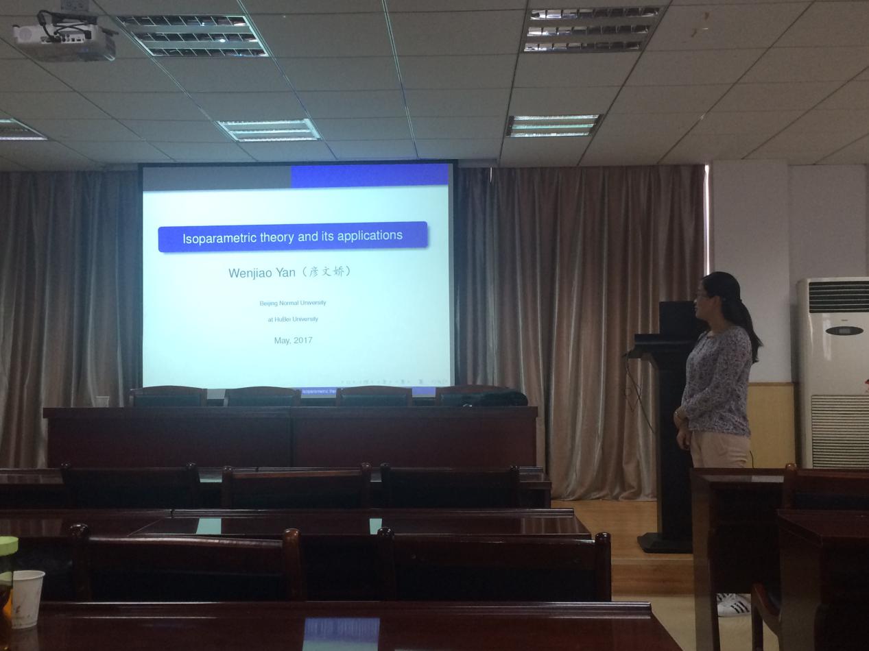 5月27日下午,北京师范大学彦文娇副教授来公司访问。她在公司201学术报告厅为师生作了题为”Isoparametric theory and its application”的报告。
