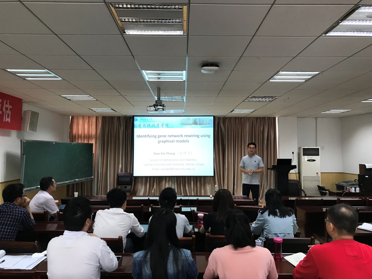 2018年6月1日,华中师范大学张晓飞副教授应邀来访公司,并在报告厅分别为公司师生做了题为《Identifying gene network rewiring using graphical models》的学术报告。