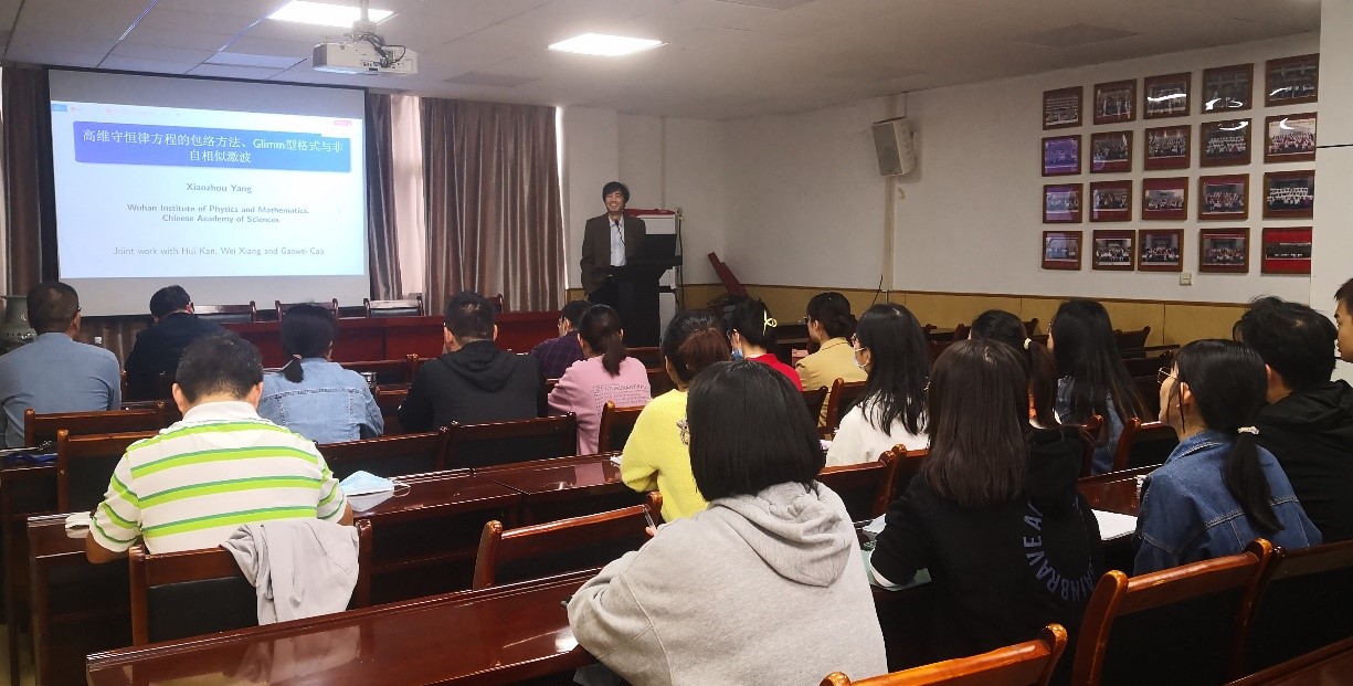 2021年10月8日下午,中科院精密测量研究院(原中科院武汉物理与数学研究所)数学部主任、博士生导师杨小舟研究员应邀在bevictor伟德官网201会议室为公司偏微分方程方向相关师生作了题为“二维守恒律方程的包络方法、Glimm型格式与非自相似激波”的学术报告。