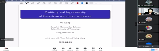王毅老师的报告题目是《Positivity and log-convexity of three-term recurrence sequences》, 王毅老师首先向大家介绍了报告相关的概念以及研究背景,接着就向大家报告了他们团队关于三项递归序列的正性和对数凸性的研究成果。