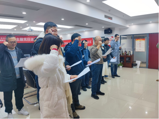 参观结束后,全体党员前往地信科技一号会议室参加会议,会上党员们重温入党誓词,地信科技总经理兼支部书记王波进行欢迎致辞,随后进行“应用统计硕士研究生工作站授牌仪式”和“伟德中国官网应用统计专业硕士校外导师聘任仪式”。bevictor伟德官网郑大彬副经理表示,此次联合主题党日活动以共建促党建,以联动育新人,是一次校企产学研协同育人新模式的有效探索,为进一步贯彻落实党的二十大精神,共同推动教育强国、科技强国、人才强国战略的落地启发了思路,注入了动力。