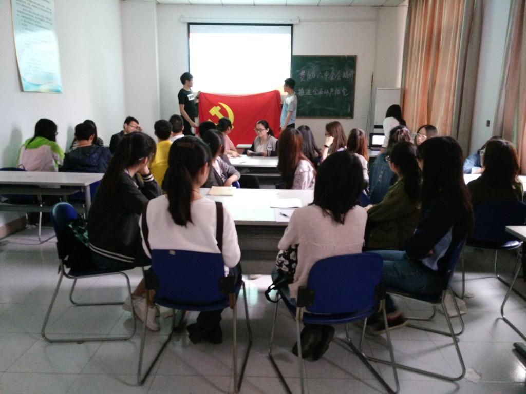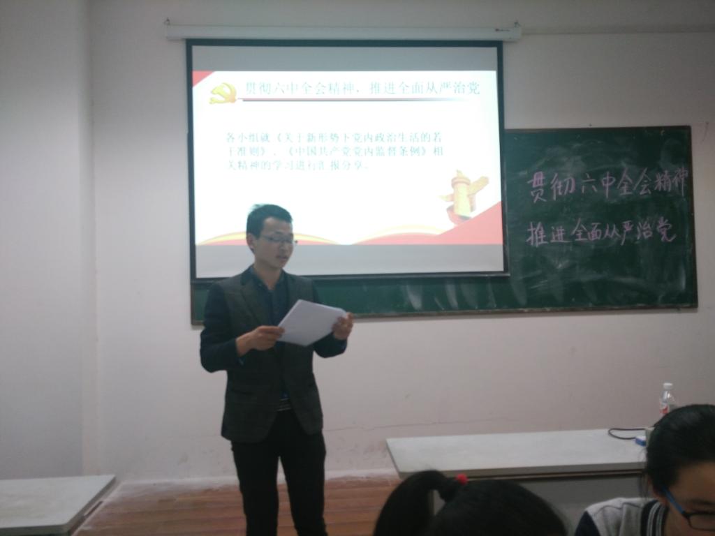 公司非毕业班员工党支部于开展了以“贯彻落实十八届六中全会,推进全面从严治党”为主题的党日活动。首先,党支部全体党员面向党旗,庄严宣誓,重温最初入党的昂扬斗志和青春情怀。本着深入学习,贯彻落实的目标,党员同志们活动前分为四个小组积极学习了《新形势下党内政治生活的若干准则》和《中国共产党党内监督条例》(以下简称《准则》、《条例》)。活动中四个小组先在组内交流学习心得,提出学习疑问,形成小组学习汇报并派出代表在全体党员面前进行发言。罗成辉同志代表小组成员做了以“坚定理想信念”为主题的学习汇报,结合十八大以来部分高官不作为、胡作为、腐败巨贪等令党和人民痛心的现象,强调总结了作为一名党员坚持理想信念的重要性;王丽同志代表小组成员就“开展批评与自我批评”进行了汇报,并将毛主席的“房子是应该经常打扫的,不打扫就会积满了灰尘;脸是应该经常洗的,不洗也就会灰尘满面。我们同志的思想,我们党的工作,也会沾染灰尘的,也应该打扫和洗涤。”与大家进行分享学习。