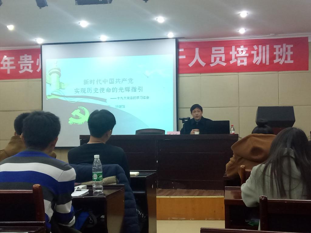 2017年11月26日晚七点,bevictor伟德官网第五期党校第4讲在伟德中国官网院八楼成功举办。本次讲座邀请到了伟德中国官网党委正处级组织员、组织部副部长杨世雄给本期学员做辅导报告,报告的主题为“新时代中国共产党实现历史使命的光辉指引”。