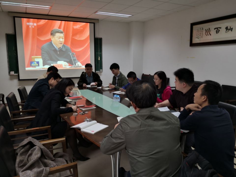 会议伊始,全体支部成员观看了《习近平在学习贯彻党的十九大精神研讨班开班式上的讲话》,通过学习,全体教师要以以时不我待只争朝夕的精神投入工作,开创新时代中国特色社会主义事业新局面。