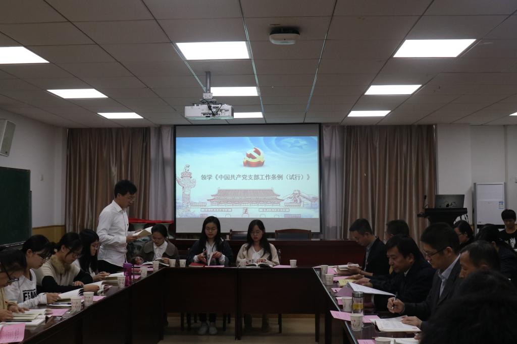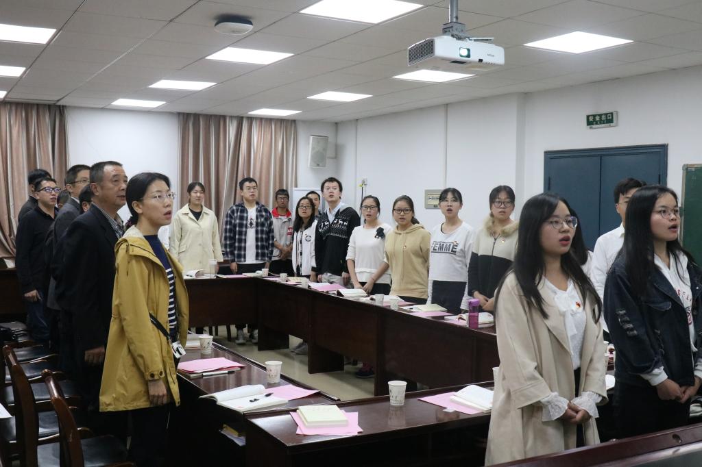 会议伊始,两个支部的组织委员通报了到会情况和10月份党费收缴情况;随后,支部成员集体奏唱国歌,bevictor伟德官网本科生第二党支部宣传委员徐文修带领全体党员重温入党誓词;接着,员工工作部(处)、武装部、校团委联合党支部宣传委员张珣带大家领学《中国共产党支部工作条例(试行)》第六章内容,视频学习《中国共产党第十九届中央委员会第四次全体会议公报》,支部书记杨元业通过会议内容、显著优势、总体目标、“十三点坚持”的工作要求为主线和大家解读党的十九届四中全会公报;随后,bevictor伟德官网本科生第二党支部成员甘宁从为什么入党、怎么入的党和能为党做什么三方面内容将“四重四亮”与个人成长相结合,谭紫莺以“重忆入党经历”为题和大家展开讨论交流,支部书记杨元业围绕年轻人“五不怕”(即:不怕任务繁重、不怕领导偏见、不怕晋升不公、不怕学习压力、不怕工作复杂)展开讨论。