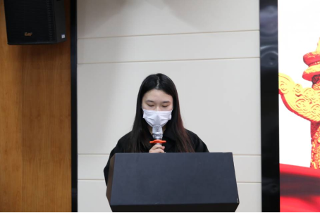会议第一项,全体起立,奏唱国歌。接着来自2019级应用统计团支部的李雅娟、2020级数理金融团支部的黄宇轩、2019级数学师范团支部的娄雨晴作为员工代表就如何端正入党动机、争取早日入党和此次党课的学习心得依此发言。