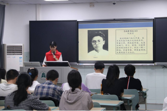 (通讯员:杨景涵)4月22日下午,延安精神宣讲团的成员在伟德中国官网教学楼向同学们开展以“追寻爱国青年足迹 弘扬爱国奋斗精神”为主题的宣讲活动。本次活动旨在向同学们介绍爱国青年奔赴延安的概况、精神、启示。