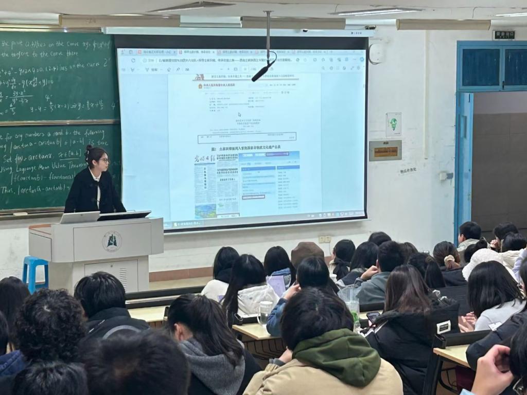 在讲座中,段芷怡等同学通过细致的讲述和生动的语言向同学们展示了他们所做的参赛PPT。他们从选题设计、文献综述、数据分析、模型设计、研究思路这几个方面进行了介绍,同时也以老师曾提出的建议给了本届参赛选手一些提醒,例如给不同群体的调查问卷也需不同。段芷怡同学也通过自己丰富的比赛经验提出,在选题上一定要贴近社会热点问题,具有可操作性,具有创新思维和拓展性。同时,在实地调研时要提前规划好要做的事,尽量选择较近的地点,并且在问卷的统计收集过程中也更要仔细认真,预防纰漏。