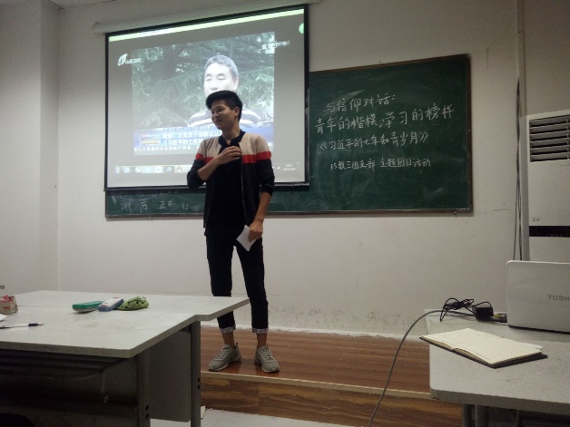 2016级数学与应用数学(2)班团支部高雅文在团支部的交流会后,写到“10月8日,在班会上,我们充分交流了学习心得体会,大家一致认为,《习近平的七年知青岁月》用真实的历史细节再现了习近平总书记1969年1月至1975年10月在陕北黄土高原七年知青岁月的艰苦生活和成长历程,生动朴实的语言拉近了总书记与人民群众之间的距离,让我们看到了一个吃苦耐劳、踏实干事的青年习近平,一个勤奋好学、志存高远的青年习近平,一个一心为民、敢于担当的青年习近平。通过学习一位党的优秀干部的成长历程,为全体党员干部特别是年轻同志树立正确的世界观、人生观、价值观,锤炼党性、砥砺成才、提升素质树立了榜样,指明了方向。团支书在交流体会时说,学习《习近平的七年知青岁月》一书要认真思考两个问题,一是“学思践悟其精神内涵”,二是“深刻认识其现实意义”。关于精神内涵:一要学习他矢志不渝的信念追求。在党的理想信念的高度指引下,青年习近平在艰难环境中毅然选择了前行的道路,适应了艰苦条件的环境转变,实现了共产党人的精神追求。二要学习他吃苦耐劳的优秀品质。在七年贫困匮乏的生活条件下,青年习近平与村民同吃同住同劳动,不畏艰苦、埋头苦干,自觉培养了艰苦奋斗的作风,磨练造就了坚韧不拔的意志。三要学习他勤奋好学的进取精神。青年习近平不断向书本学习、向群众学习、向实践学习,坚持学思结合、学干结合、学有所悟、学有所得,将学习成果服务于人民群众。四要学习他实干担当的风格气魄。青年习近平认认真真为群众办实事,全心全意为群众谋福祉,竭尽全力为群众解忧愁,坚持从实际出发,坚持依靠群众,坚持奋发有为,把改善群众生产生活条件作为检验自身工作成效的试金石。五要学习他质朴真挚的为民情怀。青年习近平从思想和感情深处与群众打成一片、融为一体、同甘共苦,想人民之所想、急人民之所急、解人民之所困,用实际行动践行着他“一切为了人民、为了人民的一切”的赤诚之心。”