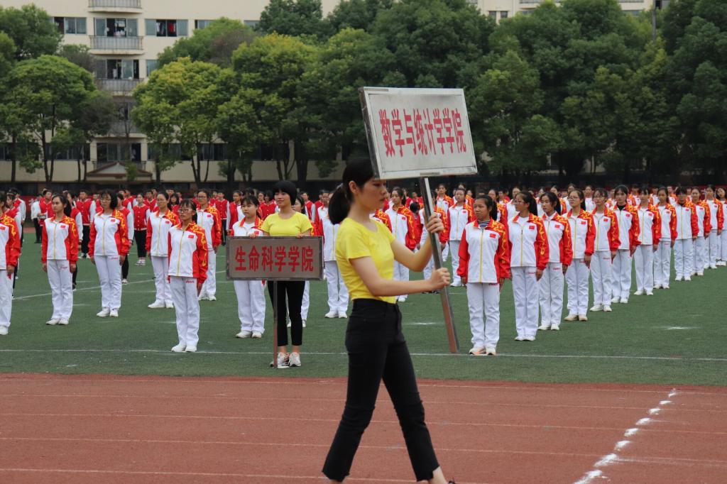 开幕式在下午两点半如期举行,首先是代表每个院的方阵表演,每个院都通过不同的表演形式展现院内特色并预祝体育文化节顺利开展。数统院方阵的开场舞瞬间点燃全场,极富节奏感的动作,代表数学的“M”型方阵,将数统院的风采展现给全校师生。