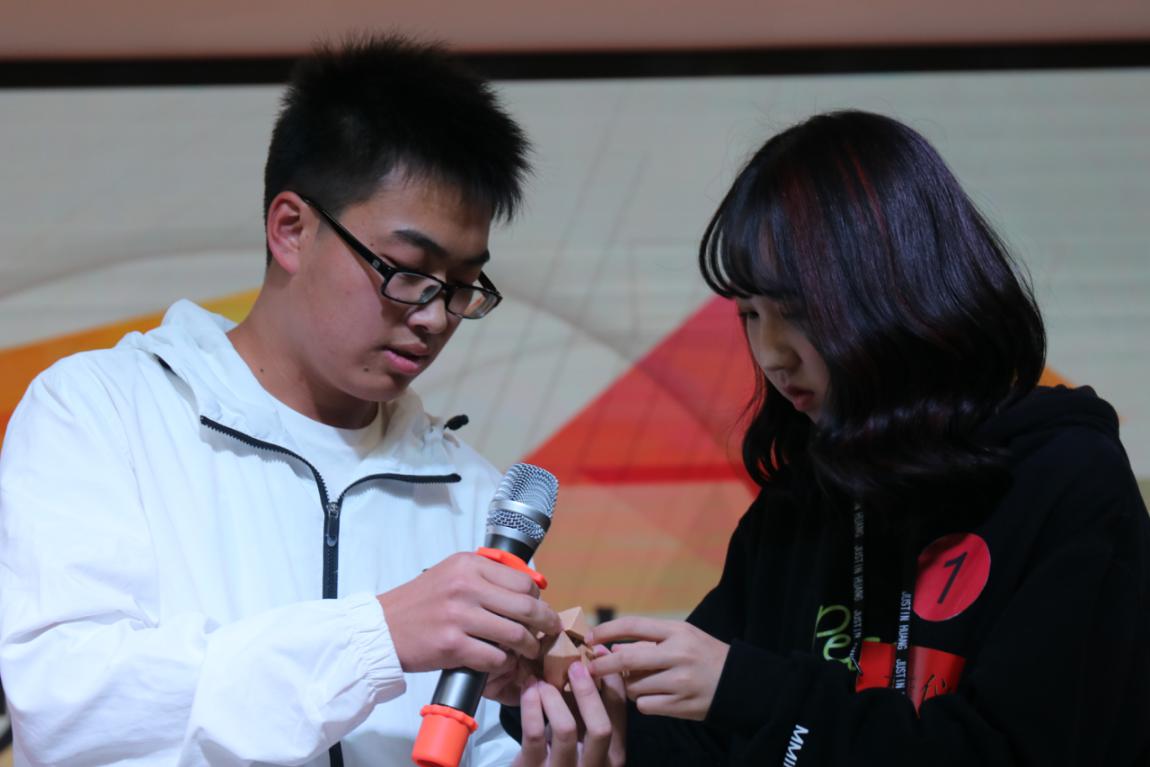 本次决赛除四轮比赛过程还穿插有“数统好声音”嘉宾歌曲演唱,数学建模协会会长“我与数模”演讲,数字华容道、孔明锁“湖大吉尼斯”记录者现场演示和现场抽奖等环节,为观众带来视听盛宴的同时为参赛选手缓解紧张的心情。“最开始我以为决赛肯定很凝重,没想到这些题目这么有趣还有嘉宾表演,‘吉尼斯’记录者展示完还现场传授经验,关键是我还能被手把手教学解孔明锁,可惜抽奖没有抽到我,不过写有数字的书签太好看了我要留下来!”现场观众郭文珊说道。