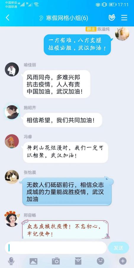 还有许许多多的无名志愿者们,他们奋战在街头,武汉封城期间接送医护人员上下班;他们来往于运输点,为隔离在家的人们送去各类物资;平时,他们是普通的小老板、社区居民、老员工、公司白领,他们还可能是快递小哥和外卖送餐员,他们大部分生活或工作在这座城市,有的以前从未来过就是这些生活在我们身边的平凡人,却一起做着值得整个社会铭记的事情:自发参与抗击疫情。他们是凡人英雄,他们是中国志愿者。每个小组成员都以发自内心的祝福去声援武汉,感恩祖国。