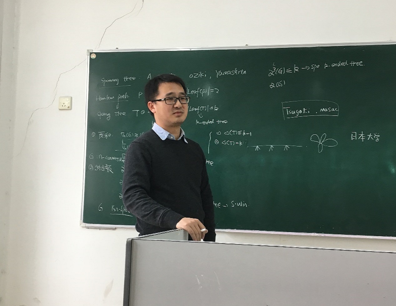 报告中,严政老师首先从哈密尔顿路入手,向同学们讲述了相关的基本概念,然后重点地讲解了支撑树相关的问题,并详细地介绍了如何从度和、独立树和禁止子图的方向去研究哈密尔顿路。最后提问环节,同学们与严政老师展开了激烈地讨论。
