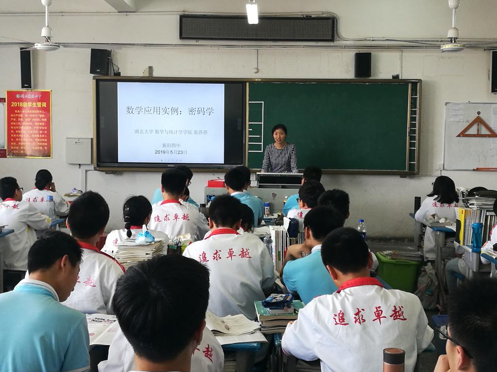 随后,公司一行前往襄阳四中开展招生宣传工作,并与部分员工进行了交流,曾祥勇为四中员工介绍了公司情况,并欢迎员工们报考伟德中国官网。公司副教授张莎莎为员工做了一场主题为《数学应用实例:密码学》的讲座,鼓励大家学好数学课程。