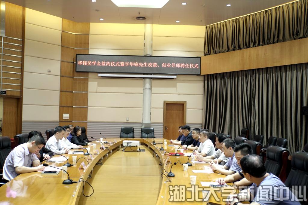 会议现场,钱建国与李华锋签订捐赠协议,并向其颁发校董聘书、创业导师聘书。李华锋员工表示,饮水思源,母校曾经的培养、老师的真心付出让他永怀感恩,抗击新冠肺炎期间,湖大师生员工同心抗疫的事迹让他感动不已,“希望能为家乡、为母校尽一份绵薄之力。”