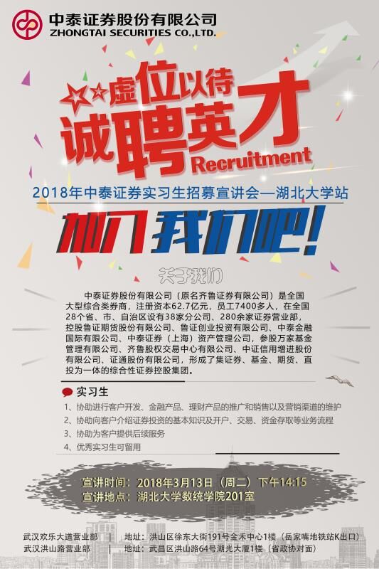 2018年中泰证券实习生招募宣讲会