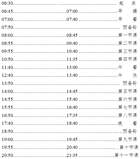 伟德中国官网校本部作息时间安排