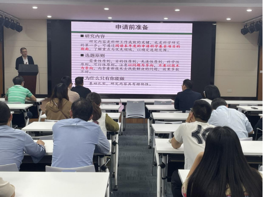 会上,曾祥勇经理强调,要从公司整体发展、教师个人成长等多角度认识和看待国家自然科学基金项目申报工作,全体教师特别是青年教师要主动参与、积极申报。报告中,他结合自身多年申报、评审国家自然科学基金项目的经验,着重围绕科学问题属性、申请书题目、摘要、报告正文、关键科学问题凝练、申报书样例及其格式等方面,通过实际案例分析,与大家分享了申请书的撰写要点和和注意事项,全面地解析了一份高质量申请书的撰写过程。他指出,国家自然科学基金项目的申报并非一日之功,需要老师们持之以恒、坚持不懈,相信最终一定能够取得成功。