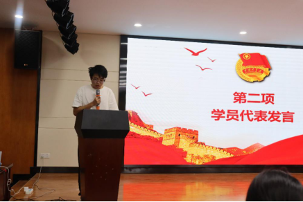 bevictor伟德官网辅导员陈慧发言,她向同学们讲述了赵炳清学长参加西部计划、bevictor伟德官网小书童支教团响应国家号召前往咸宁通山开展支教活动的事例,并对全体学员提出了殷切期盼:第一,要志存高远,忠于祖国,努力做新时代具有远大理想和坚定信念的优秀青年;第二,要敢于担当,勇于奋斗,努力做新时代具有责任感和奉献精神的优秀青年;第三,要勤奋学习,刻苦钻研,努力做新时代具有过硬本领和高尚品格的优秀青年。
