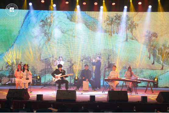 艺术思政课分为忆往昔-玉汝于成正韶华、观今朝-鲜衣怒马少年时、探来路-摘星觅月万里路三个篇章,幽默的相声、活力的舞蹈、风趣的小品、精彩的乐器演奏等各式各样的节目轮番上阵,让人大饱眼福。让人忍俊不禁的相声《口吐莲花》,勾起昔日回忆的《稻香》;《山语幻》一场充满音乐与幻想的视听盛宴,大家跟随跳动的音符,去到幽静的山林中感受大自然的呼吸与韵律,在充满幻想的山语之中翱翔;国风走秀《诗画中国》带同学们领略了中国服装的演变;小品《谁杀死了周日》不仅用诙谐幽默的语言动作引得同学们哄堂大笑,同时提醒同学们明天的计划再完美也不如今天的全力以赴;舞蹈串烧《Yes OK/What is love》演绎着青春的活力,魔术《相信》给同学们带来了欢乐和惊喜;新疆舞蹈串烧《赛乃姆》优美的舞姿,独特的舞步,展示出一种独特的美感;朗诵《是老师是员工》感受到小书童支教团与山村孩子们之间的温情。