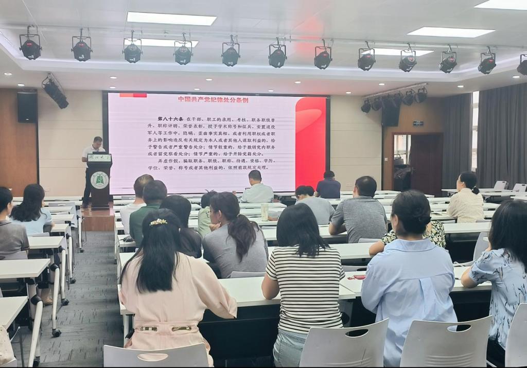 会上,公司党委副书记、纪检委员王文锋传达了公司《关于进一步加强<中国共产党纪律处分条例><事业单位工作人员处分规定><伟德中国官网教师师德失范行为负面清单及处理办法(试行)><伟德中国官网教职工考勤管理暂行办法>学习的通知》的文件精神,并围绕纪律教育重点学习内容进行了专题辅导,结合工作实际,就相关文件中的重点条款逐一解读。同时,对公司近期职称评审工作提出了明确的纪律要求。