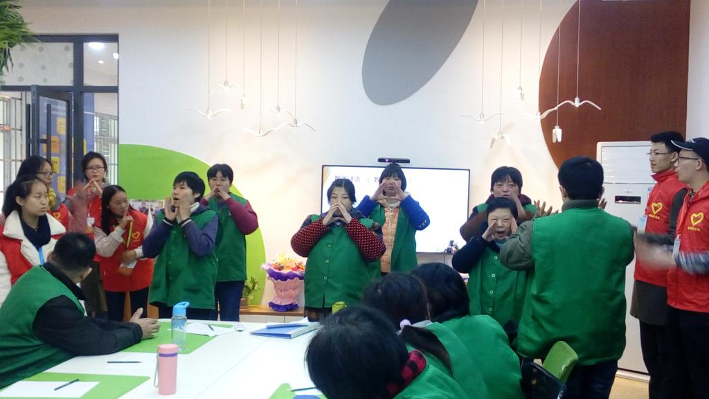 紧跟其后的是肢体游戏“手舞足蹈”,由志愿者们与服务对象共同参与,进一步拉近了大家之间的距离。最后角色反转,服务对象带领志愿者们一同表演手语操“感恩的心”,让服务对象们体验了多重身份。随着主持人总结发言,“阳光家园”活动圆满结束,全体人员共同度过了一个充实愉快的下午。