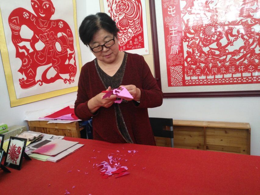 图为侯雪昭老师正在剪纸 伟德中国官网侯文慧摄